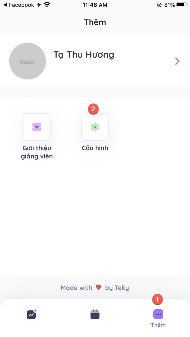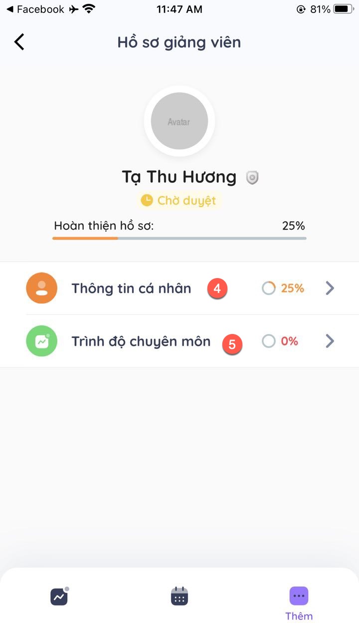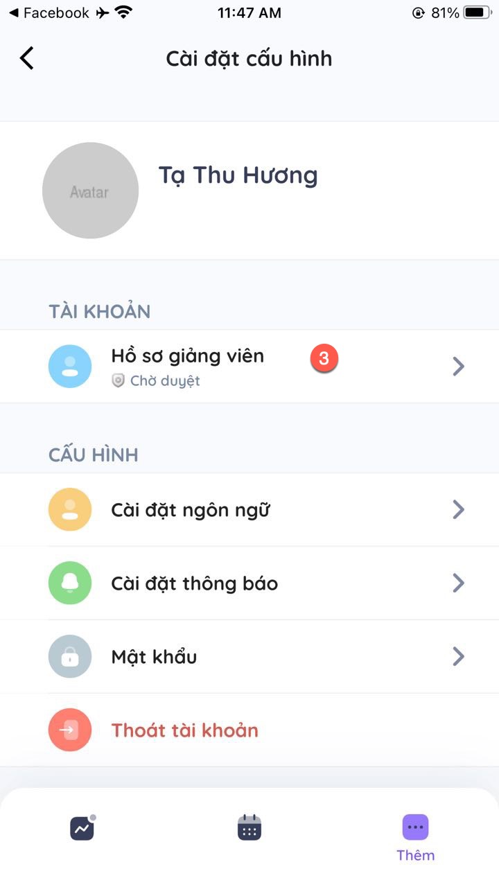 Trong Cài đặt cấu hình, chọn Hồ sơ giảng viên và cập nhật đầy đủ thông tin các mục: Thông tin cá nhân và Trình độ chuyên môn