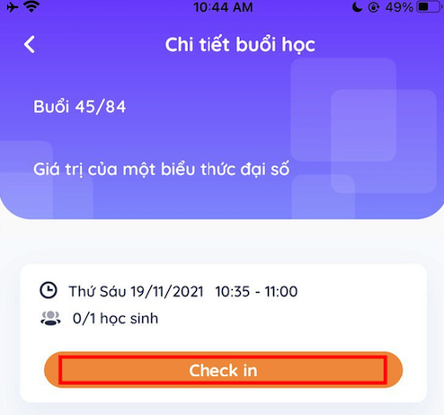 Bước 3: Chọn vào nút Check-in để thực hiện Check-in