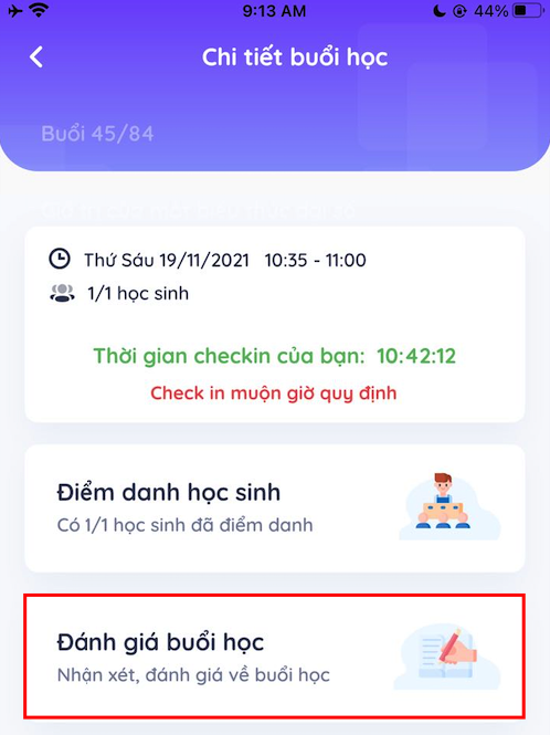 Bước 3: Chọn vào nút Đánh giá học sinh