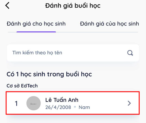 Bước 4: Chọn vào Học sinh muốn đánh giá