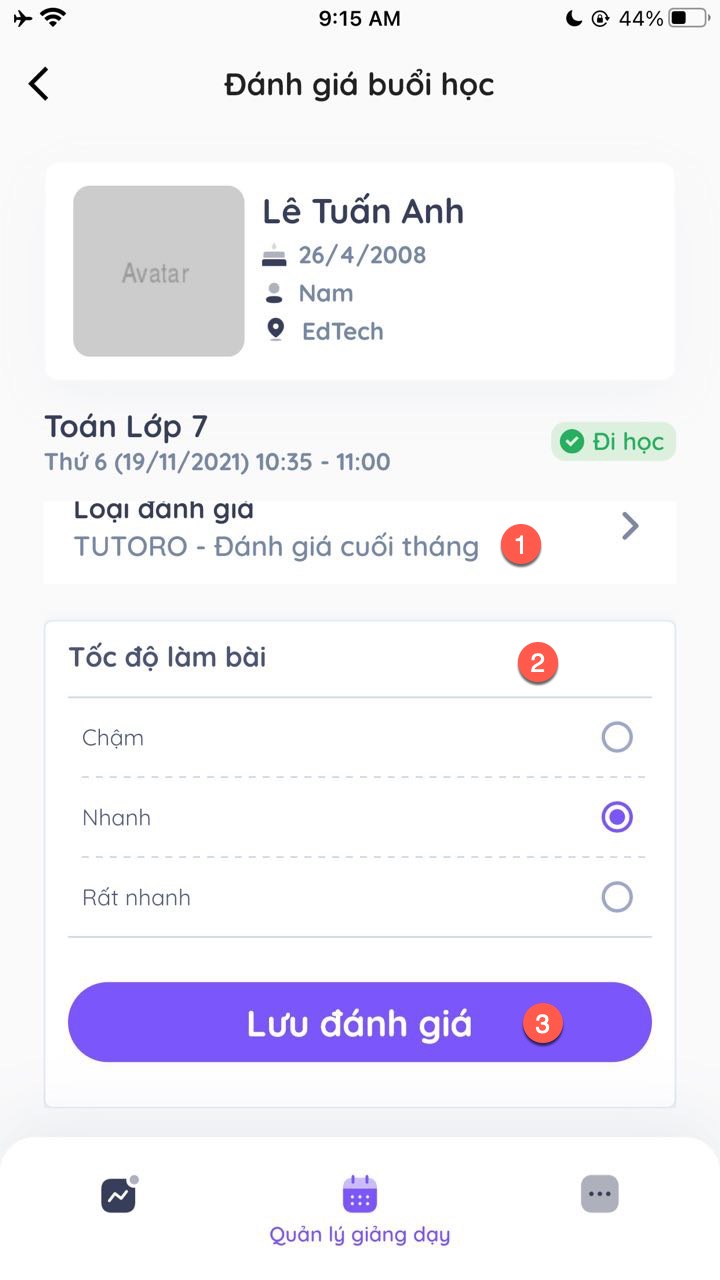 Bước 5: Đánh giá học sinh và chọn Lưu đánh giá