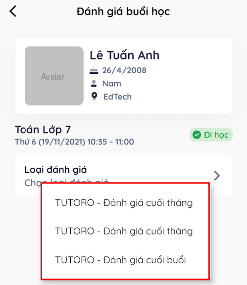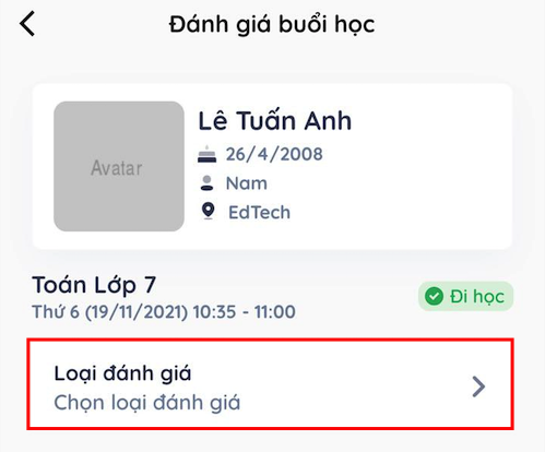 Bước 4: Chọn vào Học sinh muốn đánh giá